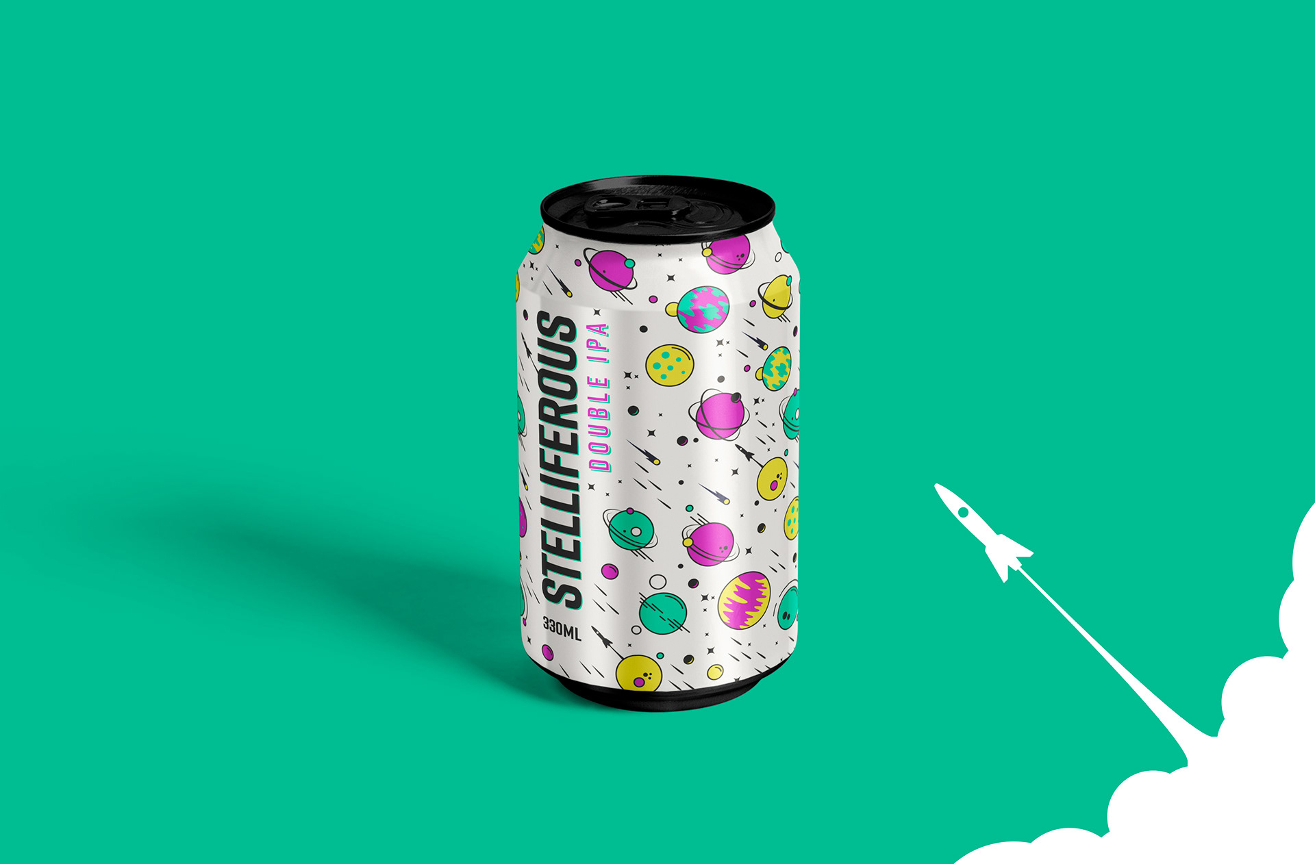 Packaging for two stellar brews; Stelliferous Double IPA & Black Hole Double IPA by the Celestial Brewing Co. A series of space inspired craft beers, flavoured with citrus notes.